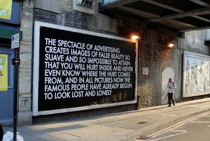 De vaste lezer van dit blog weet dat ik zeer geïnteresseerd ben in vormen van poëzie die bijzonder zijn of plaats vinden in de publieke ruimte. De Engelse kunstenaar / dichter Robert Montgomery werkt al sinds 2005 in de buitenruimte waarbij hij billboards en publieke communicatiemogelijkheden ‘kaapt’ en met gebruikmaking van allerlei guerilla technieken zijn werk onder de aandacht brengt.