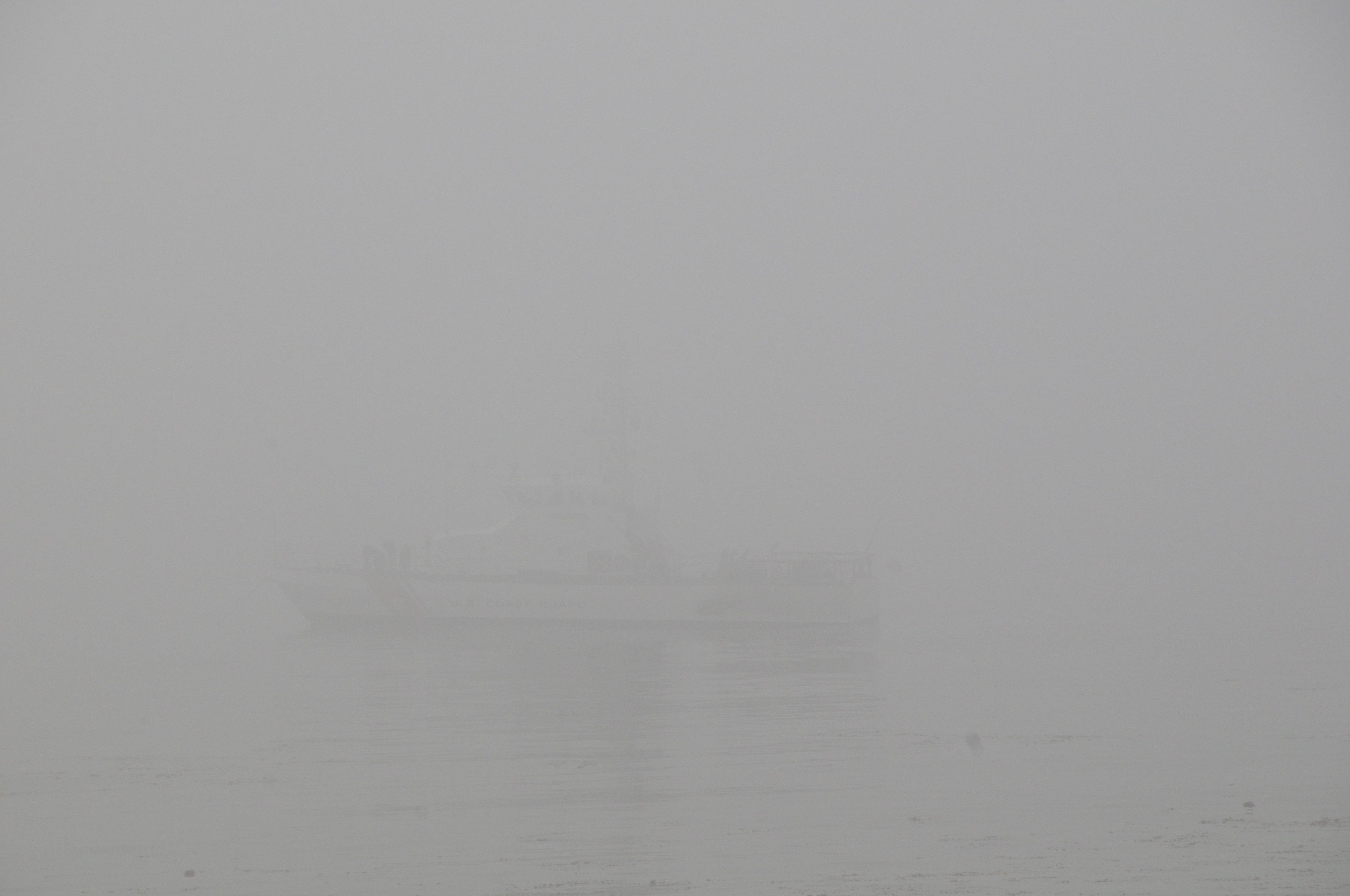 een stoombootje in de mist