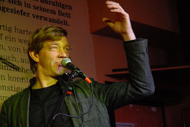 Martin Beversluis is slamdichter en stadsdichter van Tilburg. Hij organiseert in Tilburg, samen met Daan Taks, de ‘Podiumvlees’ Poetry Slam. Martin maakt ook muziek met ‘Meandertaler’ en met muzikaal dichterscollectief ‘Hongerlief’.