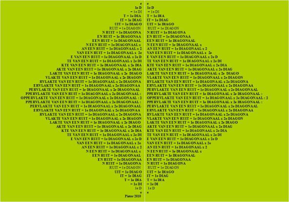 Op de website https://artafterallart.wordpress.com kwam ik een mooi voorbeeld van een gedicht in een vreemde vorm tegen. Wie de website vult en wie erachter Art after all art zit kon ik niet vinden maar de website is de moeite van een bezoekje waard. De ‘Ruit’ is gemaakt door Pieter.