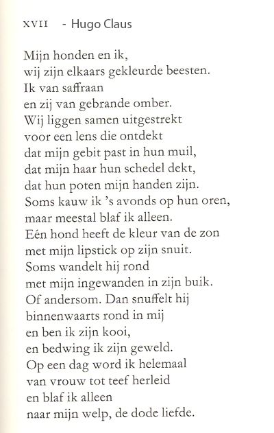 Heel eerlijk gezegd is Hugo Claus voor mij een redelijk onbekende dichter. Ik heb wel wat gedichten van hem gelezen maar dat zijn er eigenlijk niet zoveel. In de vuistdikke bundel ‘Het grote dieren gedichten boek’ uit 2007 las ik echter een gedicht van hem waar ik aan bleef hangen.