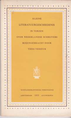 Van een goede vriendin kreeg ik een alleraardigst boekje uit 1953 van de wereldbibliotheek-vereniging met de titel: Kleine literatuurgeschiedenis in verzen over Nederlandse schrijvers bijeengebracht door Theo Vesseur. Een mooie jaren vijftig omslag en gedichten van dichters over andere dichters. Wat ook leuk aan deze bundel is, is dat in het ene gedicht een dichter dicht over een andere dichter (bijvoorbeeld Paul van Ostaijen over Guido Gezelle en even later Halbo C. Kool over Paul van Ostaijen).