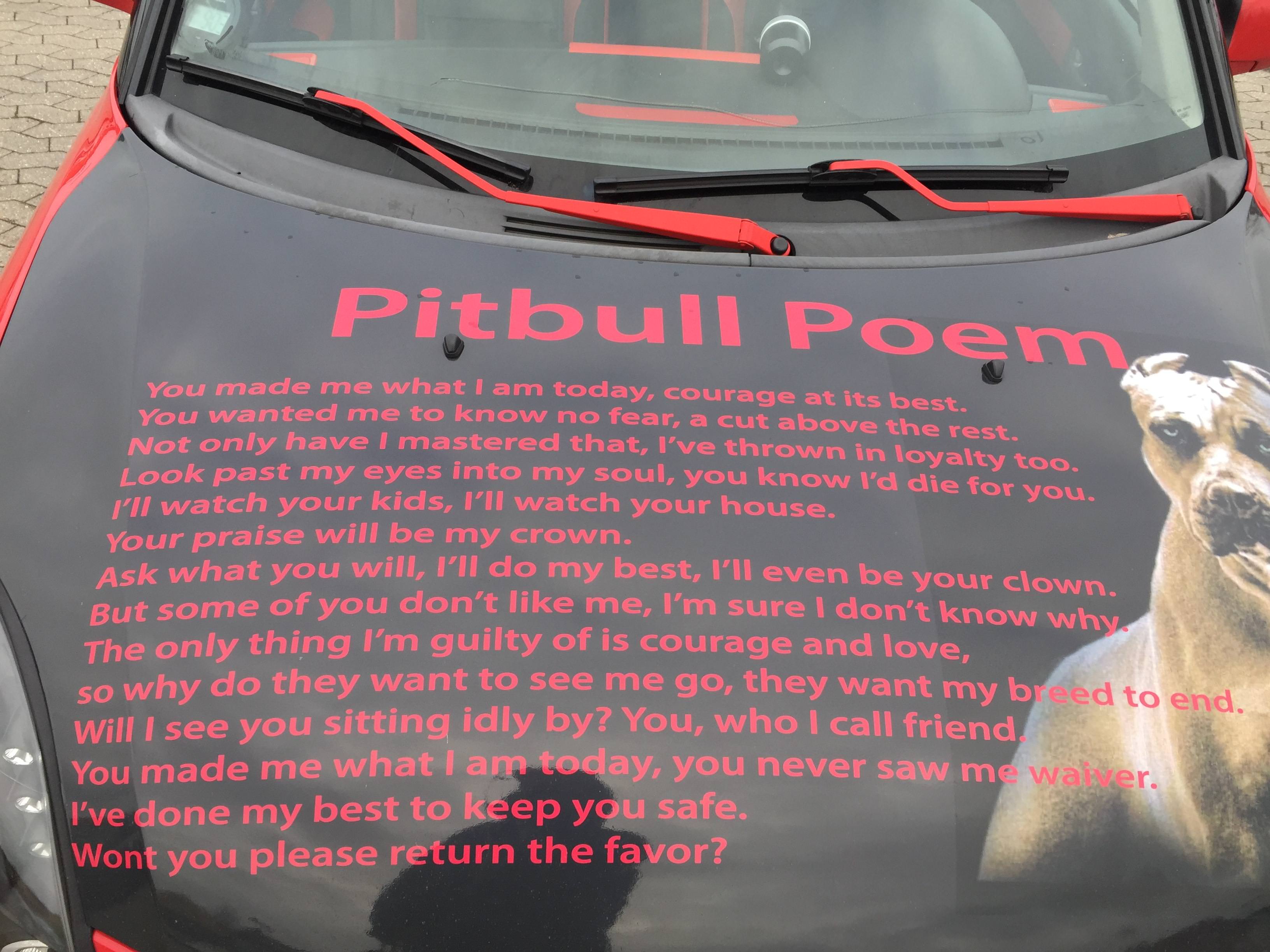 Gepubliceerd op 3264 × 2448 in Gedicht over een Pitbull op een auto