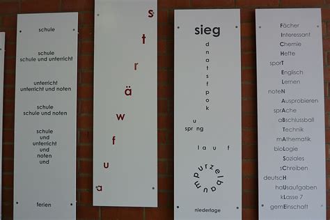 Zo is er het concrete poëzieproject van de Fichtelnaabtalschule in het Duitse Ebnath en zijn er voorbeelden van een tentoonstelling in het Getty Center in Los Angeles.