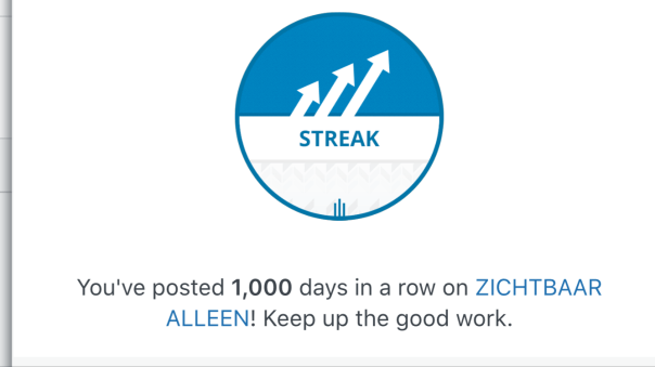 Vandaag heb ik volgens WordPress mijn 1000ste bericht aaneengesloten geplaatst op dit blog. In realiteit is het al meer dan 7 jaar dat ik dagelijks een bericht plaats.