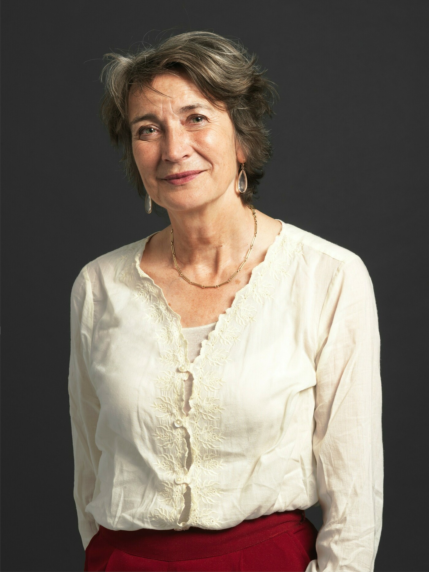 ja, daar staat een grijze vrouw, ze kijkt naar jou