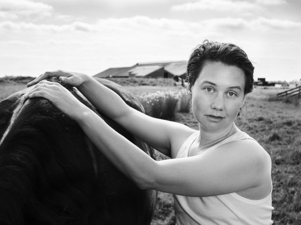 Ik toon mijn kale kop in een ondergelopen landschap.