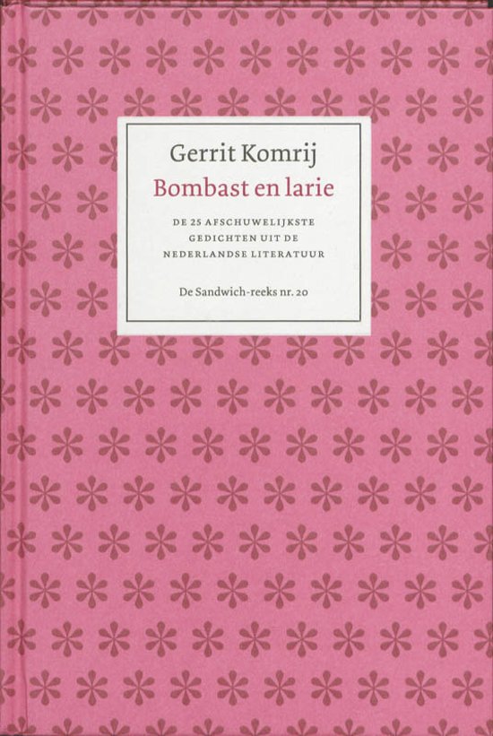 In 2009 verscheen in de Sandwich-reeks (nr. 20) de bundel ‘Bombast en larie’ samengesteld door Gerrit Komrij. In dit charmante bundeltje zet Komrij zijn gedachten op papier over hoge en lage poëzie en kiest hij de, vijfentwintig in zijn ogen, slechtste gedichten uit de periode 1822-1935. Komrij’s voorkeur gaat uit naar de edelkitsch, de huilende zigeunerjongetjes in versvorm, en dat leidt tot een kleine collectie zeer onbedoeld vermakelijke gedichten.