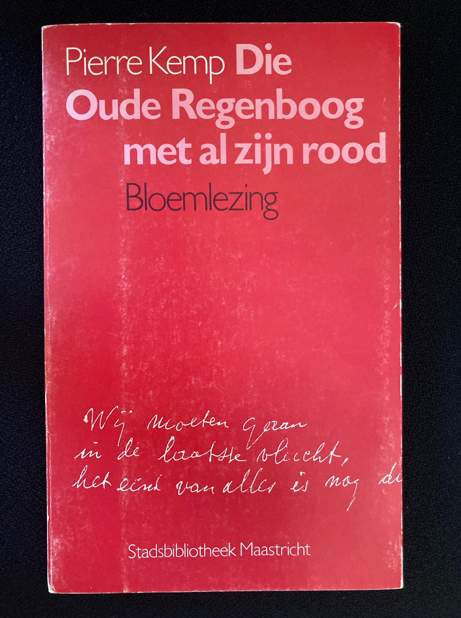 Ik merk dat ik de laatste tijd regelmatig gedichten plaats die de liefde als onderwerp hebben. Wellicht als tegengeluid tegen de agressors, de dictators, de oorlogshitsers, de machtswellustelingen en de haviken. Vandaag opnieuw een liefdesgedicht en nu van de Limburgse dichter en schilder Pierre Kemp (1886 – 1967). Van Loes kreeg ik het alleraardigste bundeltje ‘Die Oude Regenboog met al zijn rood’ (let niet op het hoofdlettergebruik, zo staat het in en op de bundel) een bloemlezing uit het werk van Kemp uit 1986, samengesteld en ingeleid door Rob Molin.