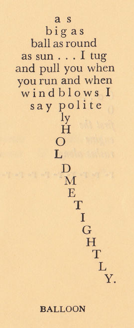 Het boekje ‘Lozenges’ staat vol met gedichtjes in de vorm van een object en heeft dit ook als titel. Voorbeelden zijn een kroon, een trein, een hockeystick en een pop.