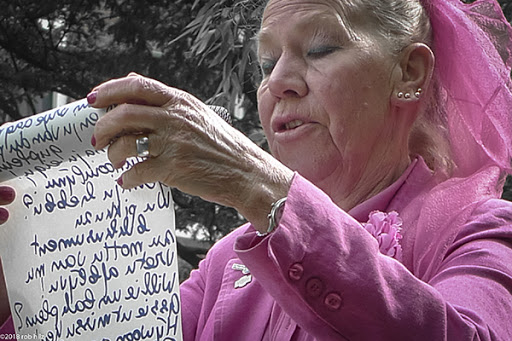 Als er één dichter is die ik mis dan is het wel Rieneke Minderman-Grobben (1944 – 2018), de immer in het roze geklede Rotterdamse die jarenlang een vaste bezoeker en dichter was van de Ongehoord! podia die ik mede mocht organiseren. Haar vrolijkheid, haar nuchterheid en haar lach was genoeg om je dag glans te geven. Steevast noemde ze me Woutertje en zij mocht dat want ze bedoelde het altijd op een positieve en lieve manier.