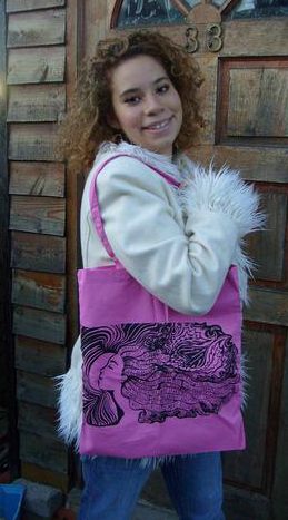Hieronder een aantal voorbeelden van haar gedichten op tassen en t-shirts.