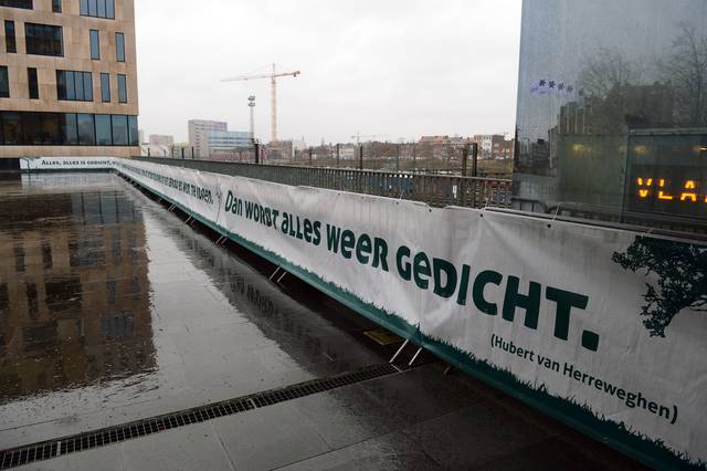 Op de nationale gedichtendag in januari heeft de provincie Vlaams-Brabant eens flink uitgepakt. Op deze dag hing men een spandoek van liefst 50 meter op het Provincieplein in Pamel met daarop een gedicht van de 95-jarige dichter Hubert van Herreweghen.