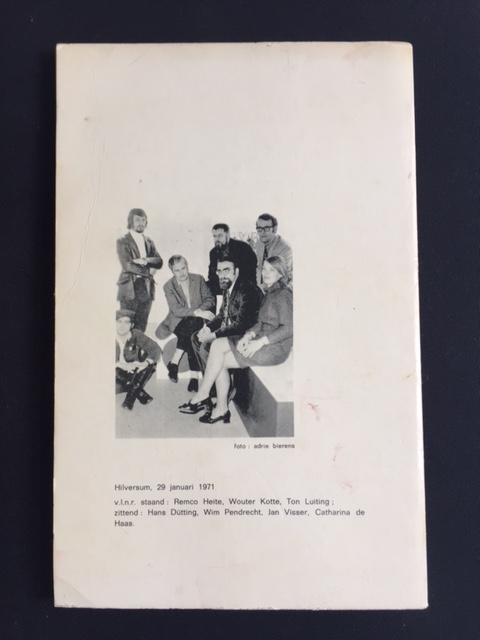In deze bundel staan gedichten van dichters als Hans Dütting, Catharina de Haas, Remco Heite, Wouter Kotte, Wim Pendrecht en Jan Visser. Zij staan ook op een werkelijk prachtige jaren zeventigfoto op de achterflap. Van elke dichter staat er een korte bio- en bibliografie (indien aanwezig) en zelfs korte stukjes uit krantenrecensies (indien aanwezig).
